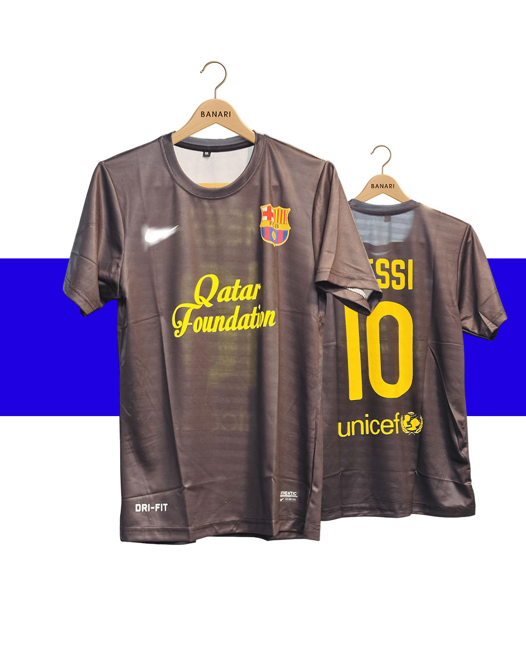 Step back into the golden era of Barcelona with this 2011–12 Messi Away Kit. Designed with lightweight Dri-Fit fabric, bold Qatar Foundation sponsor detailing, and the classic yellow print, this jersey brings back peak Barça nostalgia for collectors and fans.