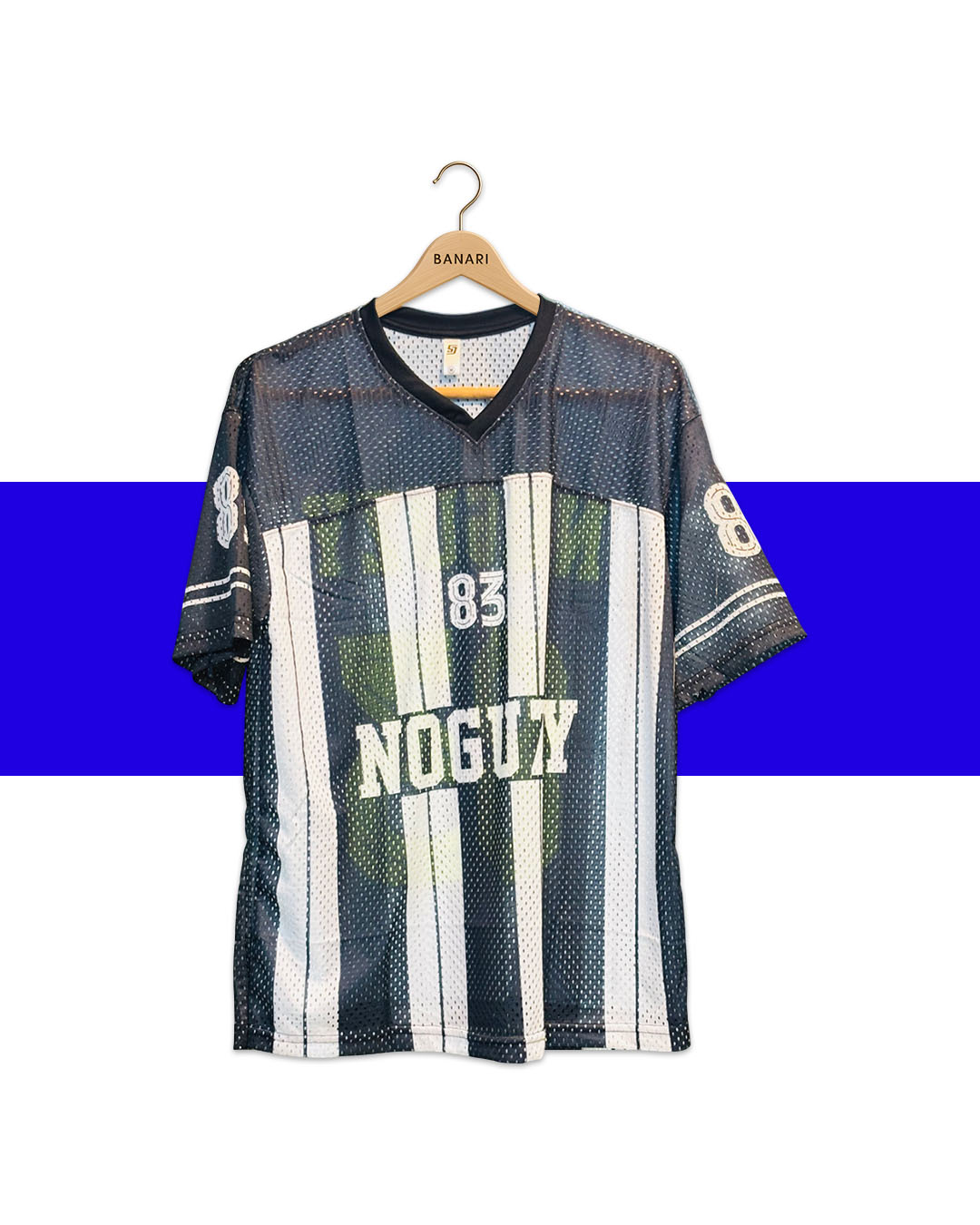 Step into street-style comfort with the NOGUZY 83 loose-fit mesh jersey. Featuring bold vertical stripes, breathable mesh fabric, and standout “83” detailing on front and back, this jersey delivers a perfect mix of retro attitude and everyday comfort.